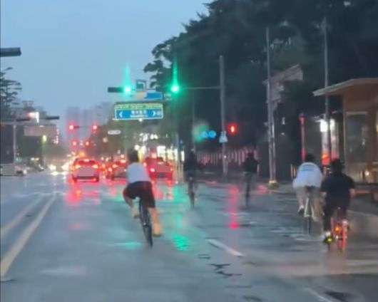 이들은 헬멧 등 안전 장비도 전혀 갖추지 않은 채 1,2차로를 점령하고 지그재그로 주행하거나 뒤를 돌아보는 등 아찔한 자전거 주행을 이어갔다.