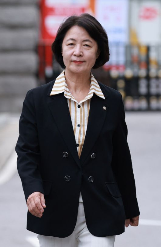 국회 탄핵소추위원장인 추미애 법제사법위원장이 지난 9일 서울 종로구 헌법재판소 대심판정에서 열린 조지호 경찰청장 탄핵심판 사건 첫 변론기일에 출석하고 있다. (사진=연합뉴스) |