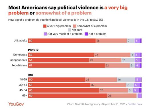 커크 피살 직후 실시된 YouGov 여론조사에 따르면, 미국인의 87%가 정치 폭력을 문제라고 인식했다.