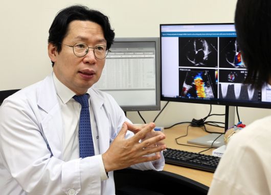 강덕현 서울아산병원 심장내과 교수가 중증 승모판 역류증으로 판막 성형술을 받은 환자를 진료하고 있다. |