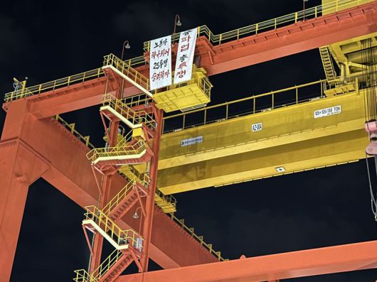 HD현대중 노조 고공농성 7일째, 전면파업 지속