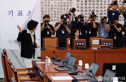 [서울=뉴스핌] 윤창빈 기자 = 추미애 국회 법제사법위원장이 16일 오전 서울 여의도 국회에서 열린 법제사법위원회 전체회의에서 나경원 국민의힘 의원의 간사 선임의 건에 대한 투표를 하고 있다. 2025.09.16 pangbin@newspim.com