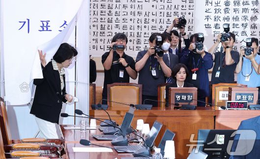 (서울=뉴스1) 신웅수 기자 = 추미애 국회 법제사법위원장이 16일 오후 서울 여의도 국회에서 열린 법제사법위원회 전체회의에서 나경원 국민의힘 간사 선임에 대한 건을 투표하고 있다. 2025.9.16/뉴스1phonalist@news1.krCopyright ⓒ 뉴스1. All rights reserved. 무단 전재 및 재배포, AI학습 이용 금지.