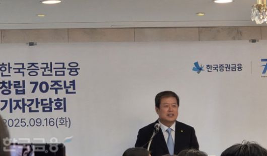 김정각 한국증권금융 사장이 16일 여의도에서 연 한국증권금융 창립 70주년 기자간담회에서 인삿말을 하고 있다. / 사진= 한국금융신문(2025.09.16) |