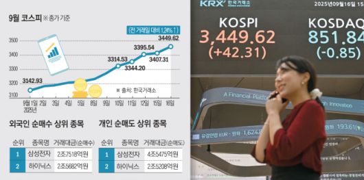 이달 들어 두 종목의 상승 폭은 두드러진다. 9월 1일부터 16일까지 삼성전자는 17%, SK하이닉스는 36% 급등했다. 같은 기간 코스피 상승률이 10%에 그친 것과 비교하면 압도적이다.