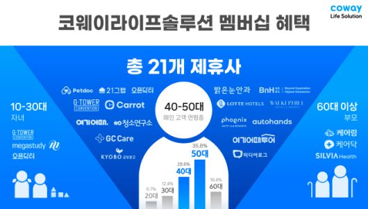 [디지털데일리 옥송이 기자] 실버케어 전문기업 ‘코웨이라이프솔루션’(이하 코라솔)이 고객 생애주기 전반을 아우르는 제휴 서비스를 지속 확대하고 있다. 시장 내 후발주자임에도 불구하고, 고객이 필요로 하는 생활 밀착형 멤버십 전략으로 차별화된 입지를 다지고 있다는 평가다.