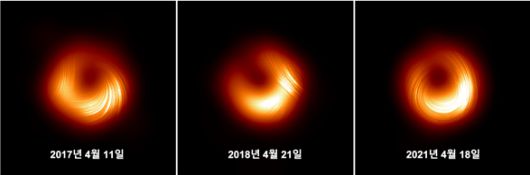특히 2021년 관측 영상에서는 자기장의 회전 방향이 2017년과 정반대로 나타나는 극적인 변화가 포착됐다. 김재영 UNIST 물리학과 교수는 “사건지평선 부근의 고온·고압 플라즈마가 블랙홀로 떨어지거나 분출하면서 주변을 휘저어 자기장 패턴의 변화를 만든 것으로 보인다”며 “이는 블랙홀 부근의 물질이 예측보다 훨씬 복잡하게 움직인다는 증거”라고 분석했다.