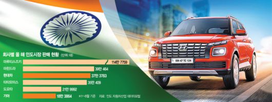 신형 베뉴는 최근 인도 시장에서 판매가 주춤한 현대차에 힘을 보탤 것으로 보인다. 현대차는 올 들어 8월까지 인도에서 37만 3783대를 판매해 지난해 같은 기간(40만 8299대)에 비해 판매 실적이 8.4% 감소했다. 기아가 같은 기간 인도에서 18만 대 넘게 판매해 이를 합치면 55만 대를 훌쩍 넘어 현지 브랜드인 타타모터스와 마힌드라를 크게 제치고 현대차그룹이 2위를 굳건히 지키고 있지만 현지 업체들의 추격전은 가열되는 양상이다.