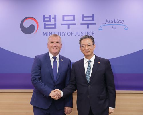 ▲ 정성호 법무부 장관은 16일 정부과천청사 법무부에서 마이클 맥그라스 유럽연합(EU) 집행위원과 면담하고 인공지능(AI), 개인정보보호, 국제 형사 분야의 상호 협력을 강화하기로 했다. (서울=연합뉴스)