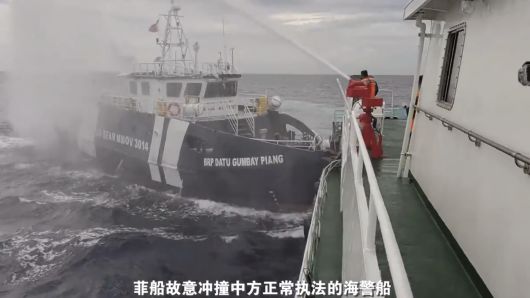 간 대변인은 이날 오전 10시쯤 여러 차례 중국 측의 엄중한 경고에도 불구하고 필리핀 측 3014호 공무선이 비전문적이고 위험하게 고의로 중국 측의 정상적인 법 집행 선박을 충돌했다고 설명했다. 그는 필리핀 측의 고의적인 도발 행위는 매우 심각한 수준으로, 충돌에 대한 책임은 전적으로 필리핀 측에 있다고 강조했다.