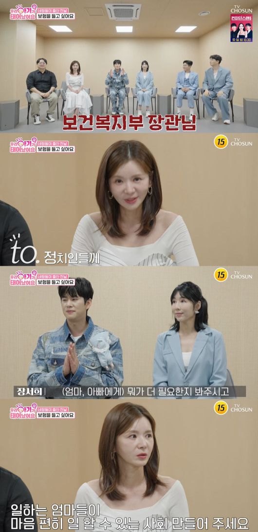 이에 '출산특파원'들은 출산 장려를 하기 전에 제도 개선이 먼저 되어야 한다고 밝혔다. 손민수는 보건복지부 장관에게 "예비 엄마, 아빠들을 위해서 태아 보험에 신경 써 달라"고 전했다. 장서희는 "정치인분들, 저희 프로그램 보면서 (엄마, 아빠에게) 뭐가 더 필요한지 봐주시고, 일하는 엄마들이 마음 편히 일 할 수 있게 해달라"며 소신발언을 했다.