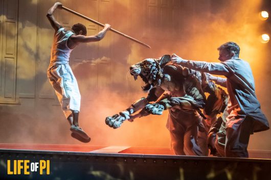 ‘로미오와 줄리엣’(2017) 이후 8년 만의 연극 무대. 복귀작은 감독상 포함 오스카 4관왕이 된 영화 ‘파이 이야기’(2012)로 널리 알려진 캐나다 작가 얀 마텔의 소설 원작 연극 ‘라이프 오브 파이’다. 혼을 담은 퍼핏(puppet)이 세트·미술·조명·음향 등 첨단 무대 기술과 만났을 때 어떤 미학적 성취를 이룰 수 있는지 보여주는 작품. 무대 위 태평양을 떠도는 구명보트 위엔 소년 파이만 인간 배우일 뿐 호랑이, 오랑우탄, 하이에나, 얼룩말이 다 퍼핏이다. 생명을 불어넣은 듯한 퍼핏의 움직임은 압도적. 호랑이 리처드 파커가 파이를 덮치려 뛰어오를 땐 ‘헉’ 하고 숨을 몰아쉬며 가슴을 쥐어뜯게 된다. 거대한 폭풍우, 수평선과 맞닿은 광활한 밤하늘 등 무대 전체가 살아 움직이는 스펙터클이다. 맨부커상을 받은 원작 소설(2002)이 먼저 누적 1200만부가 팔린 베스트셀러가 됐다. 연극은 2021년 런던 웨스트엔드에서 초연 뒤 ‘숨이 멎을 만큼 아름답다’(가디언)는 평을 받으며 공연계 최고 권위의 영국 로런스 올리비에상 5관왕, 미국 토니상 3관왕이 됐다.