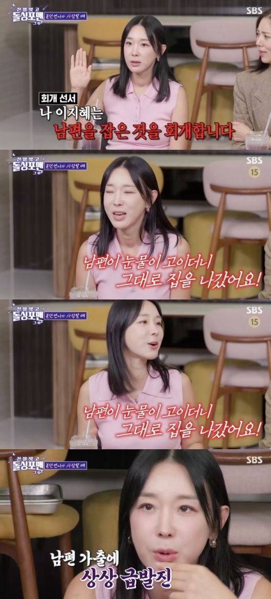 그러면서 이지혜는 결혼 생활 중 겪었던 위기를 토로했다. 이지혜는 “화날 땐 남편이 제 편을 안 들어줬을 때다. 제가 또 욱한다. 저도 모르게 남편 등짝을 때린 것이다. 남편이 눈물이 고이더니 집을 나갔다. 우리 남편이 제일 화낸 것이다. 헤어지는 건가 (싶었다)”라며 이혼 위기를 겪었다고 털어놨다.