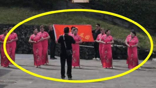 공개된 영상에는 중국 전통의상인 치파오를 입은 여성 10명이 성산일출봉 동암사 인근에서 춤을 추고 있는 모습이 담겼다. 이들은 진달래 빛 치파오를 똑같이 입고 미리 연습한 듯 중국 음악에 맞춰 같은 동작을 춘다.