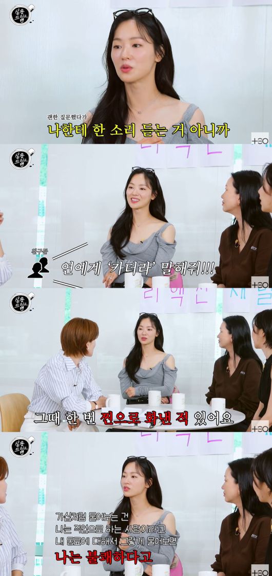 이어 "예전에 친구들이 '연예계 '카더라' 말해 줘'라고 할 때, 진짜로 화낸 적이 있다. '네가 가십처럼 물어보는 걸 나는 직업으로 하는 사람이다. 내 동료에 대해서 그렇게 물어보면 불쾌하다'라고 했다. 그 다음부터는 친구들도 진지하게 생각해서 가볍게 안 묻는다"라며 과거 경험에 대해 털어놨다.