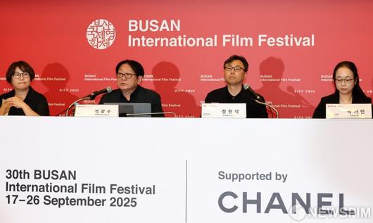 [서울=뉴스핌] 최지환 기자 = 박광수 부산국제영화제 이사장이 26일 오후 서울 중구 대한상공회의소에서 열린 제30회 부산국제영화제 개최 기자회견에서 발언하고 있다. 다음 달 17일부터 10일 간 열리는 이번 영화제에서는 64개국 241편이 공식 상영작으로 선정됐다. 연계 프로그램인 커뮤니티비프 상영작까지 포함하면 총 324편이 상영된다. 왼쪽부터 김영덕 마켓위원장, 박광수 이사장, 정한석 집행위원장, 박가언 수석프로그래머. 2025.08.26 choipix16@newspim.com |