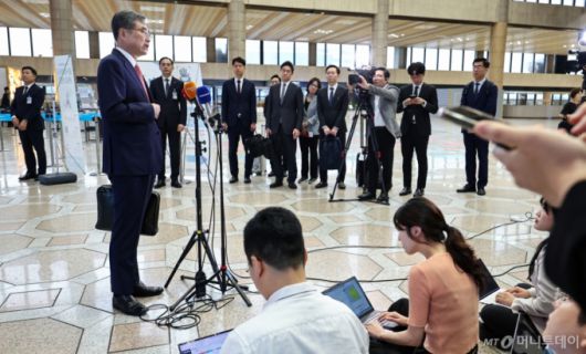 (서울=뉴스1) 김도우 기자 = 조현 외교부 장관이 17일 오전 서울 강서구 김포국제공항을 통해 중국으로 출국하기 앞서 취재진 질문에 답하고 있다. 조 장관은 중국 베이징을 방문해 왕이 중국 외교부장과 첫 한중 외교장관회담을 가질 예정이다. 2025.9.17/뉴스1 Copyright (C) 뉴스1. All rights reserved. 무단 전재 및 재배포, AI학습 이용 금지. /사진=(서울=뉴스1) 김도우 기자 |