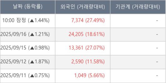 [표] 외국인ㆍ기관 순매매량 (단위 주)