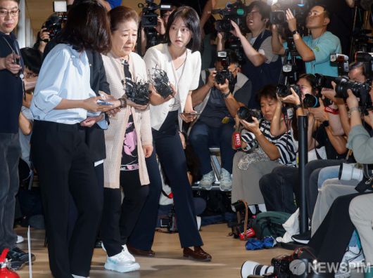[서울=뉴스핌] 류기찬 기자 = 권성동 국민의힘 의원에게 정치자금을 제공한 혐의를 받는 한학자 통일교 총재가 17일 오전 서울 종로구 KT광화문빌딩 웨스트에 마련된 김건희 특검 사무실로 출석하고 있다. 2025.09.17 ryuchan0925@newspim.com