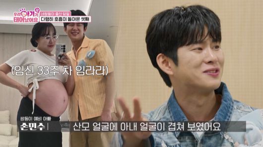 16일 정규 첫 방송된 TV조선 예능 ‘우리 아기가 또 태어났어요(연출 이승훈 김준, 작가 장주연)’에서는 ‘출산특파원’ 박수홍X김종민X장서희X김찬우X사유리X손민수가 한자리에 모였다. 단장 박수홍이 이들을 대표해 주변에서 들어본 적조차 없는 ‘네쌍둥이 산모’와 먼저 만났다. 박수홍은 아내가 직접 챙겨준 분유와 신발 선물을 한가득 들고 출산을 하루 앞둔 네쌍둥이 산모를 찾아갔다. 선물의 정체에 ‘자발적 비혼모’ 사유리는 “분유 선물이 제일 좋다”며 박수홍 아내의 센스를 인정했다.