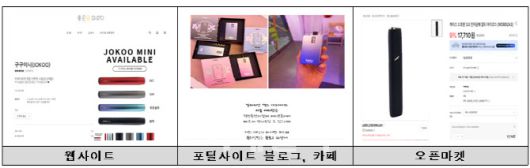 전자담배 기기장치류의 청소년 구매가능 사이트 예시(자료=한국건강증진개발원 제공) |