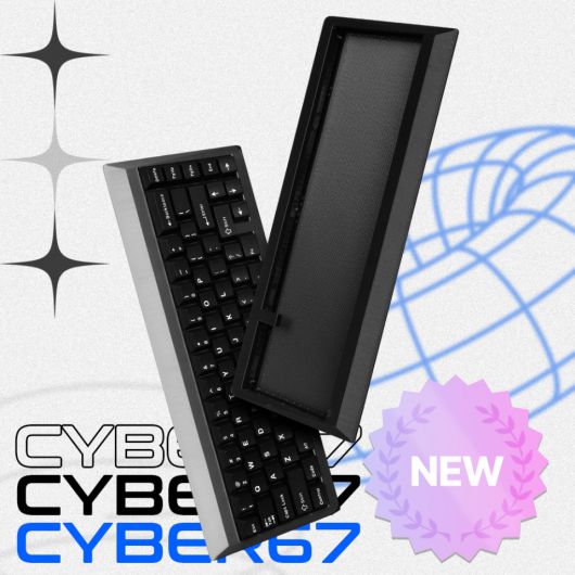 가츠 사이버67은 67키 레이아웃의 핫스왑 유선 베어본 키보드로, 사용자가 직접 조립하고 완성하는 DIY 콘셉트를 기반으로 한다. PLA 소재의 하우징은 메탈 텍스처를 살려 견고하면서도 독창적인 질감을 구현했으며, 투명 보강판과 리프 스프링 구조를 적용해 LED와 어우러지는 시각적 연출과 탄성 있는 타건감을 동시에 제공한다.