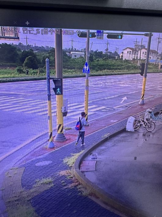 밀입국 피의자가 제주시 한경면 용수리에서 이동하는 모습이 담긴 폐쇄회로(CC)TV 영상. 제주지방해양경찰청 제공 |