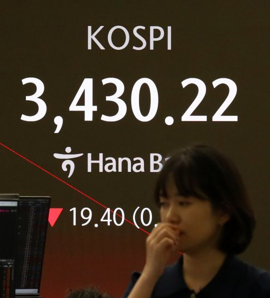 17일 오전 서울 중구 하나은행 딜링룸 전광판에 지수가 표시되고 있다. 뉴시스 |