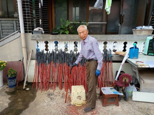 [영동=뉴시스]연종영 기자 = 88세 '미수(米壽)'를 맞은 노인이 장수를 기원하는 상징 '명아주 지팡이' 130여 개를 만들어 주변에 기증했다.