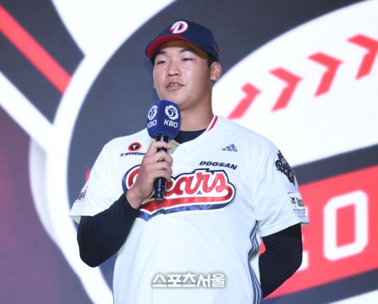 마산용마고 김주오가 17일 서울 송파구 롯데호텔 월드에서 열린 2026 KBO 리그 신인드래프트에서 두산에 지명된 후 소감을 밝히고 있다.2025. 9. 17.최승섭기자 thunder@sportsseoul.com [기사제보 news@sportsseoul.com] Copyright ⓒ 스포츠서울&sportsseoul.com