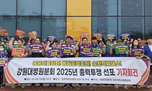 앞선 16일 오후 6시 노조는 강원대병원 본관 1층 로비에서 총파업 공동투쟁 승리를 위한 전야제를 열었다. 이날 전야제에서 이요한 분회장은 “파업할 결심, 투쟁할 결심은 쉽지 않았다. 그럼에도 파업을 결정했다”며 “조합원을 믿고 끝까지 해보겠다. 마지막까지 최선을 다하겠다”고 결의를 다졌다.