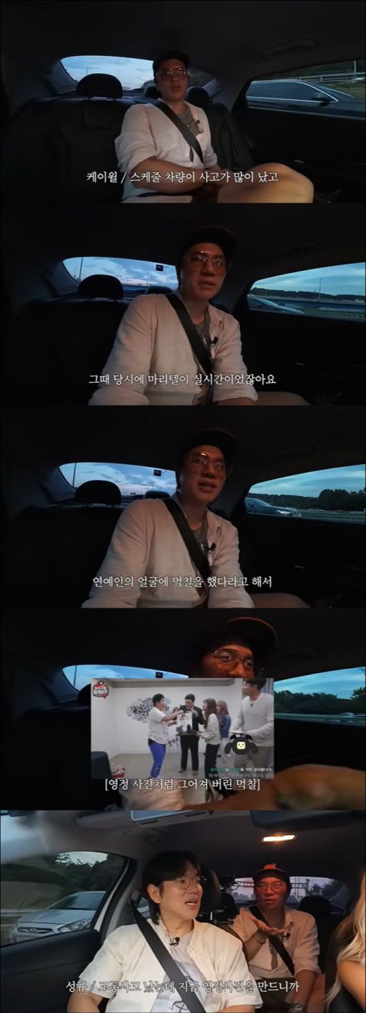 장성규는 케이윌에게 "사고 난 적 한번도 없냐"고 물었고 케이윌은 "많다. 스케줄 차량이 사고가 많이 났다. 너도 하나 알고 있다. 그때가 제일 큰 사고였다"고 떠올렸다.