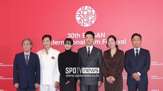 제30회 부산국제영화제 개막작 '어쩔수가없다' 기자회견이 17일 오후 3시 10분 부산 영화의 전당 중극장에서 열렸다. 이날 현장에는 '어쩔수가없다'의 박찬욱 감독과 배우 이병헌, 손예진, 박희순, 이성민, 염혜란과 박가언 수석 프로그래머가 참석했다.