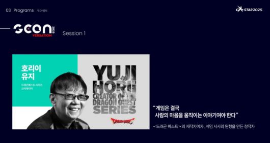 특히 <드래곤 퀘스트>, <파이널 판타지>, <발더스 게이트 3>, <클레르 옵스퀴르: 33원정대> 등 세계적으로 주목받은 타이틀의 핵심 개발자들과 각 분야를 대표하는 창작자들이 참여해 경험과 철학을 공유할 예정이다. 또한 단순한 발표 형식을 넘어 대담과 토론 중심의 프로그램을 도입해, 청중이 내러티브의 본질과 미래를 보다 심도 있고 다각적인 시각에서 조망할 수 있도록 기획됐다.
