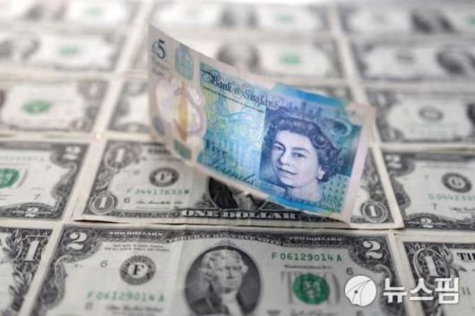 미국 달러화 위에 놓인 영국 파운드화 [사진=로이터 뉴스핌] |