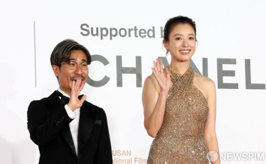 [부산=뉴스핌] 최지환 기자 = 영화 '로맨틱 어나니머스'에 출연한 배우 한효주와 츠키카와 쇼 감독이 17일 오후 부산 해운대구 영화의전당에서 열린 제30회 부산국제영화제(BIFF) 개막식 레드카펫 행사에서 포즈를 취하고 있다. 2025.09.17 choipix16@newspim.com
