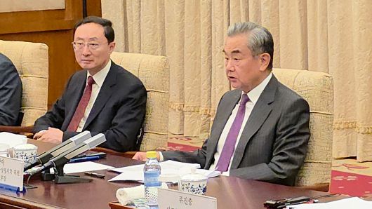왕이 중국 외교부장(장관)이 중국 베이징을 방문한 조현 외교부 장관과 만나 무역 보호주의에 공동으로 반대해야 한다고 말하는 등 사실상 '미국 견제 메시지'를 냈습니다.