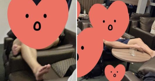 [파이낸셜뉴스] 베트남 다낭 공항 라운지 안에서 신발을 벗고 의자와 테이블에 맨발을 올려놓은 모습이 포착돼 눈살을 찌푸리게 했다.