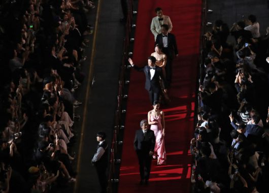 영화 ‘어쩔수가없다’의 박찬욱 감독과 배우 손예진, 박희순, 염혜란, 이성민, 이병헌이 17일 오후 부산 해운대구 영화의전당에서 열린 ‘제30회 부산국제영화제(BIFF)’ 개막식에서 레드카펫에 입장하고 있다. |