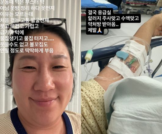 이후 김영희는 결국 응급실을 찾아간 사진을 공개했다. 그는 “결국 응급실. 알러지 주사맞고 수액 맞고 약처방 받아옴. 제발”이라고 했다.