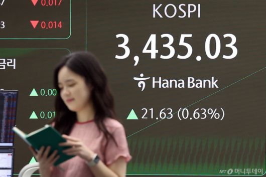 (서울=뉴스1) 김진환 기자 = 18일 오전 서울 중구 하나은행 딜링룸 전광판에 개장 시황이 나오고 있다. 이날 코스피는 전 거래일보다 21.63포인트(0.63%) 오른 3435.03에 거래되고 있다. 2025.9.18/뉴스1 Copyright (C) 뉴스1. All rights reserved. 무단 전재 및 재배포, AI학습 이용 금지. /사진=(서울=뉴스1) 김진환 기자 |