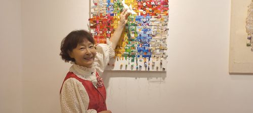 환경 메시지를 담은 '조각의 합창'도 돋보인다. 폐비닐과 종이박스를 재활용한 작품으로 요즘 이슈가 되고 있는 바닷속 환경 오염에 대한 이야기를 담았다. 서로 엮어진 비닐과 박스는 바다의 상처와 인간의 흔적을 표현했고 이에 고통받고 있는 상어가 비닐 끈에 감겨 있는 모습을 그렸다.