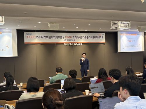 이날 소개된 두 상품은 분배율 7%에 맞춰 설계된 것으로 'TIGER 200타겟위클리커버드콜ETF'와 'TIGER 코리아배당다우존스위클리커버드콜ETF' 2종이다. 오는 23일 한국거래소에 신규 상장될 예정이다.