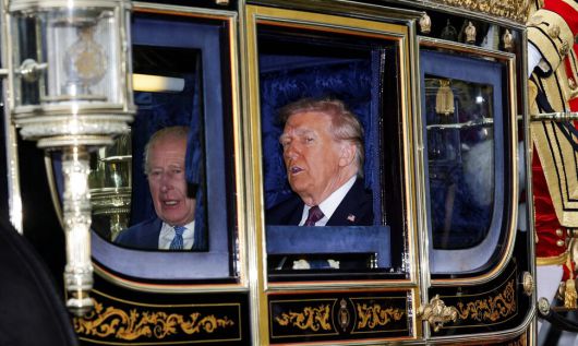 이후 트럼프 대통령은 찰스 3세와 함께 금으로 도금된 왕실 마차인 ‘아일랜드 국가 마차’를 타고 왕실 근위대의 호위를 받으며 성으로 입장했다. 이 마차는 국왕이 의회 개원식 연설(‘킹스 스피치’)를 위해 이동할 때 타는 마차로, 엘리자베스 2세 전 영국 여왕의 결혼식에도 사용됐다.