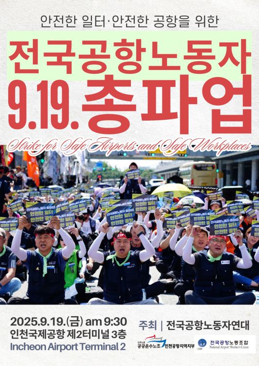 인천공항과 김포공항 등 전국 15개 공항노동자들이 19일 총파업에 돌입한다.