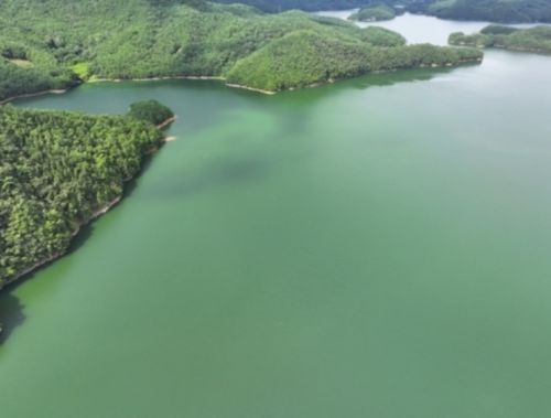 짙은 녹조가 발생한 주암호 전경. 영산강유역환경청 제공 |