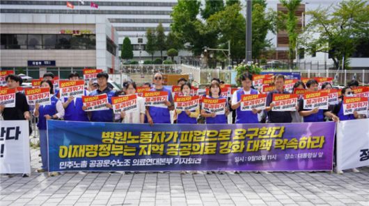 의료연대본부가 17일 국립대병원 노동자들의 1차 경고파업에 이어 오는 24일 2차 공동파업을 예고하며 정부에 지역·공공의료 강화를 위한 특단의 대책을 촉구했다.