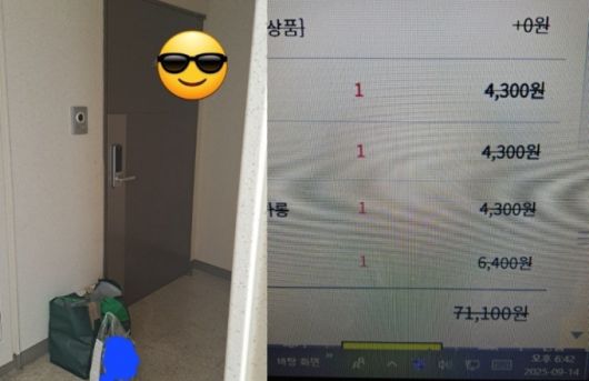 주소지에 도착한 A씨는 현관문 앞에 놓인 장바구니처럼 보이는 쇼핑백 앞에 음식을 내려놓고는 배달 완료 인증샷을 보냈다.