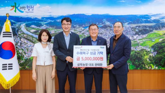 삼득농장(대표 권태환)은 합천군청 군수실을 방문해 집중호우로 피해를 입은 이재민을 돕기 위한 성금 500만원을 기탁했다. 이번 성금은 농장을 운영하는 권태환 대표가 지역사회와 함께 어려움을 극복하자는 뜻에서 마련한 것이다.