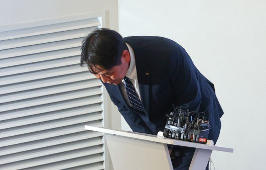 구재형 KT 네트워크부문 네트워크기술본부장이 18일 서울 종로구 KT광화문빌딩에서 열린 KT 소액결제 피해 관련 대응 현황 발표 기자회견에서 허리 숙여 사과하고 있다. [사진 = 연합뉴스] |